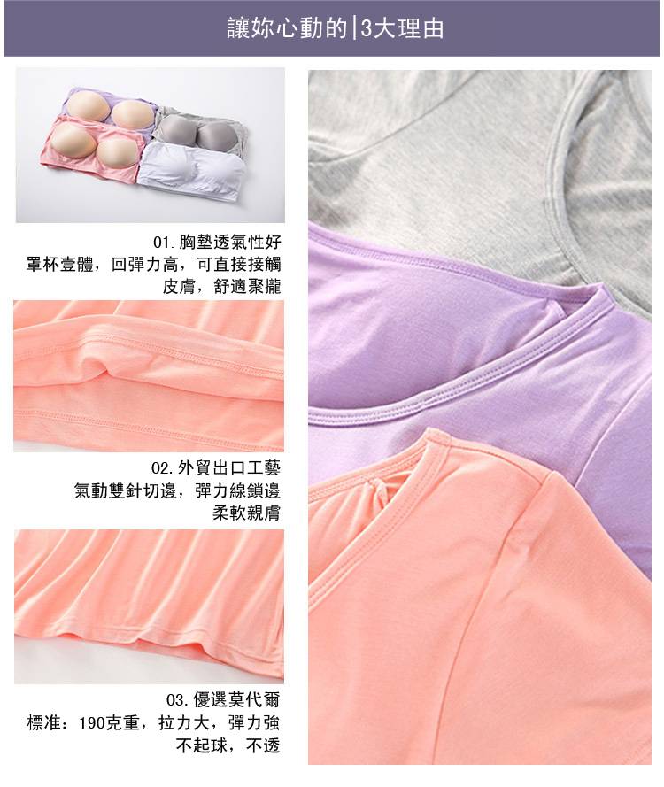 5分鐘前【廠家直銷 買一送一】夏季爆款莫代爾帶胸墊可外穿家居短袖,一體式無鋼圈設計,方便舒適,告別鋼圈束縛,柔軟莫代爾面料,不舒服包退!限時售價!買到賺到 - 【買一送三】任選4件 均價299