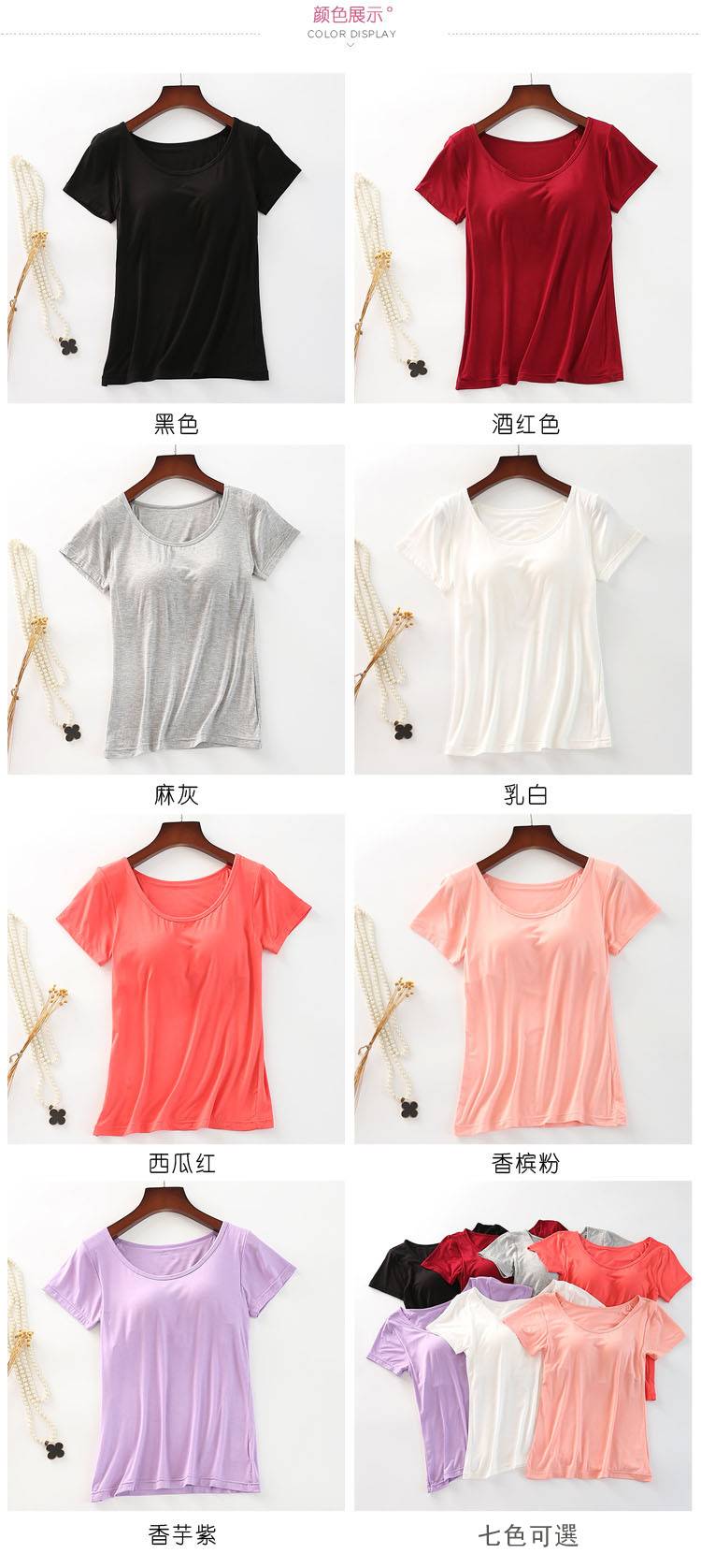 5分鐘前【廠家直銷 買一送一】夏季爆款莫代爾帶胸墊可外穿家居短袖,一體式無鋼圈設計,方便舒適,告別鋼圈束縛,柔軟莫代爾面料,不舒服包退!限時售價!買到賺到 - 【六件促銷】任選6件 均價233