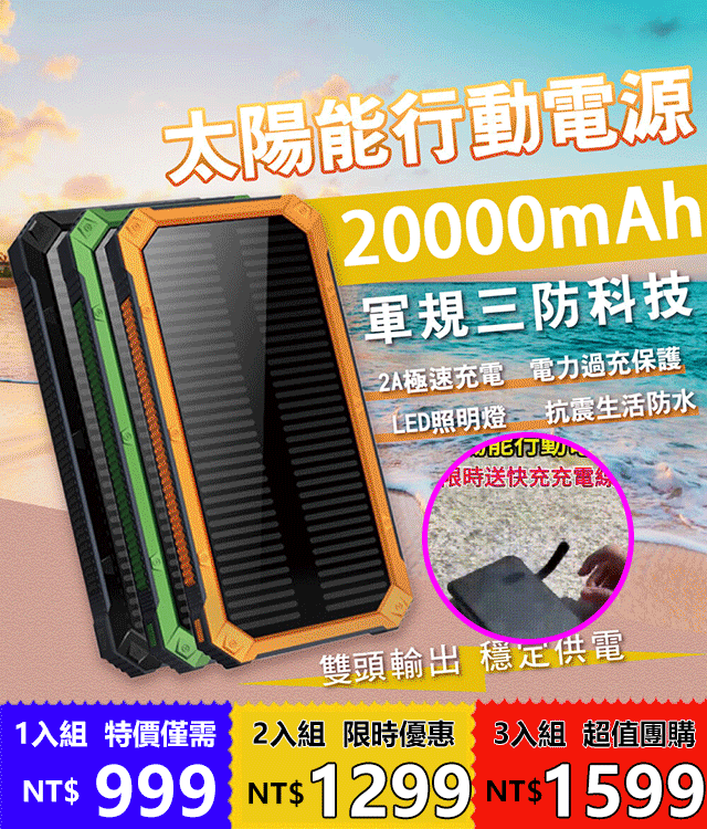 4分鐘前太陽能行動電源 - 【團購優惠】太陽能行動電源3入組僅需-NT$ 1599