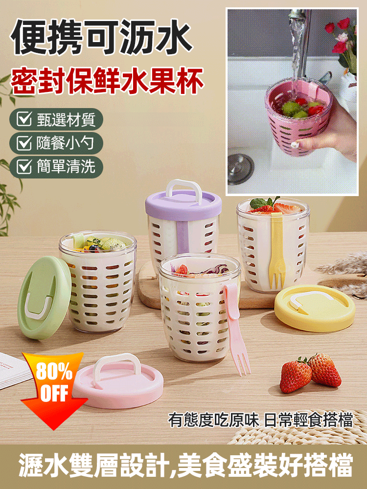 半小時前便攜可瀝水密封保鮮水果杯 - 買三送三1299